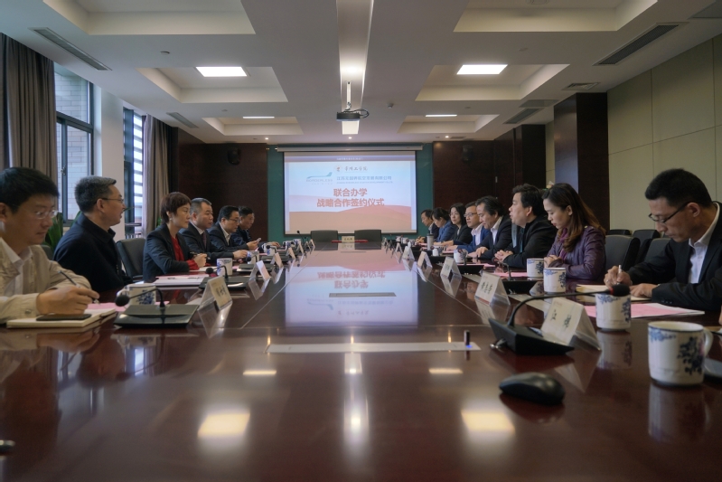 签约仪式上,校长汤正华介绍了学校的基本情况,充分肯定了双方“优势互补、资源共享、互惠双赢、共同发展”的发展模式。他指出,航空类专业是学校发展的内在需要,是学校产教融合及创新创业发展的新起点、新方向、新路径,符合学校学科建设、科学研究和应用型人才培养的方向与要求,学校将积极支持并大力推动,真诚希望双方在战略合作的大框架下,多维度、多领域及多视角培养高水平、应用型、国际化的航空人才,做出特色,打出名牌。