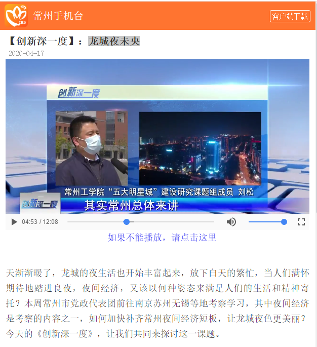 4月17日 常州电视台【创新深一度】 | 龙城夜未央(刘松博士接受采访,谈常州夜间经济发展)