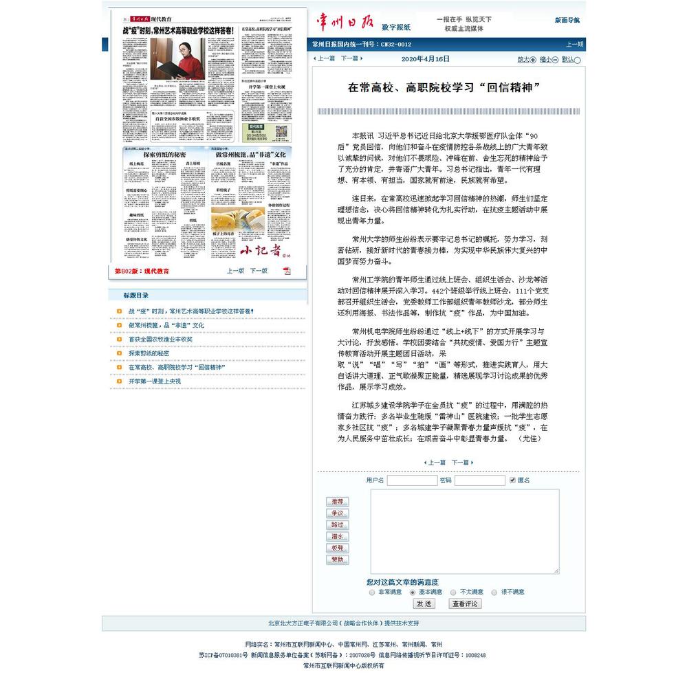 4月16日 常州日报| 在常高校、高职院校学习“回信精神” 第B02版