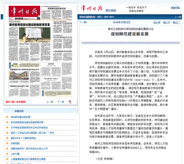本报讯 5月16日,常州教育系统众多专家、领导齐聚常州工学院,与该校师范学院教师共话师范学院建设、改革与发展。