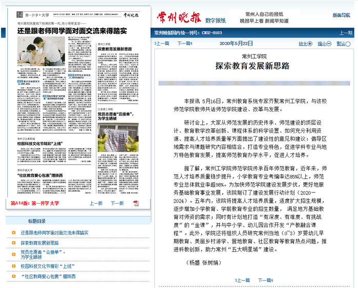 本报讯 5月16日,常州教育系统专家齐聚常州工学院,与该校师范学院教师共话师范学院建设、改革与发展。