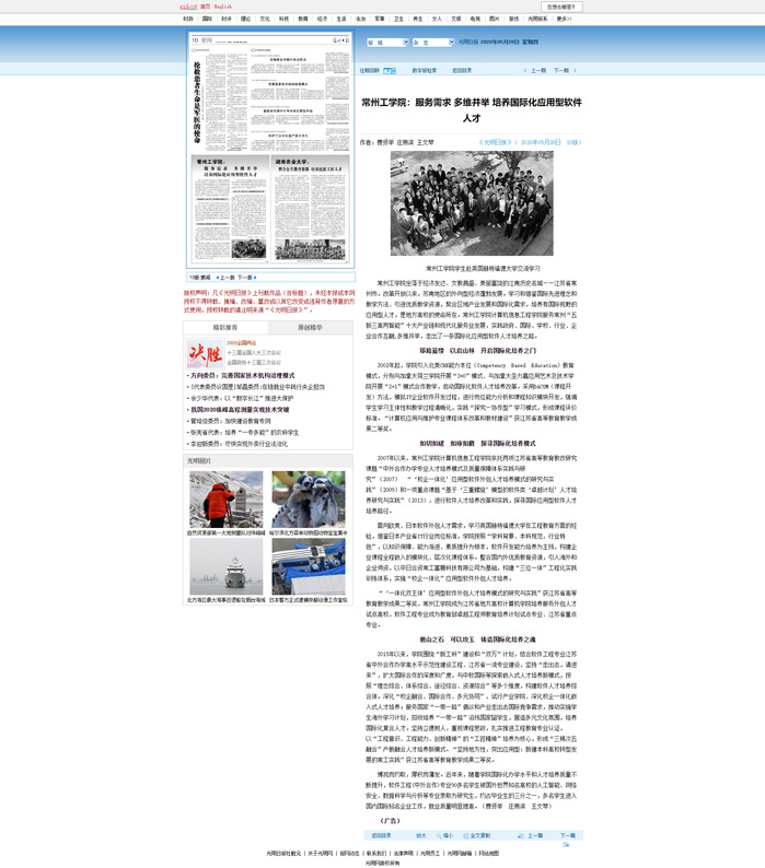 常州工学院坐落于经济发达、文教昌盛、美丽富饶的江南历史名城——江苏省常州市。改革开放以来,苏南地区的外向型经济蓬勃发展。学习和借鉴国际先进理念和教学方法、引进优质教学资源,契合区域产业发展和国际化需求,培养有国际视野的应用型人才,是地方高校的使命所在。常州工学院计算机信息工程学院服务常州“五新三高两智能”十大产业链和现代化服务业发展,实践政府、国际、学校、行业、企业合作互融,多维并举,走出了一条国际化应用型软件人才培养之路。