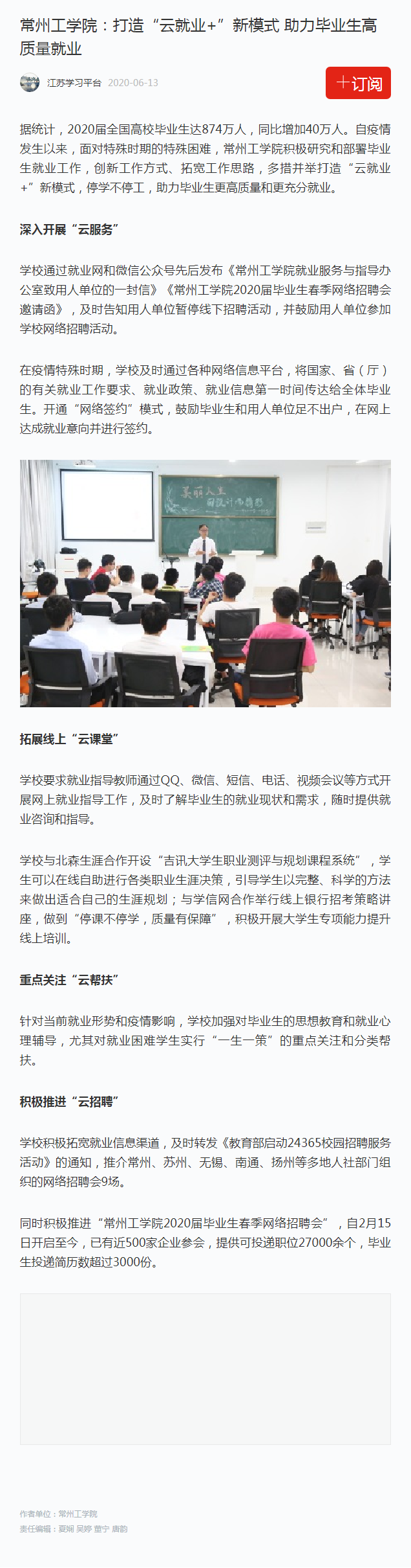 常州工学院:打造“云就业+”新模式 助力毕业生高质量就业