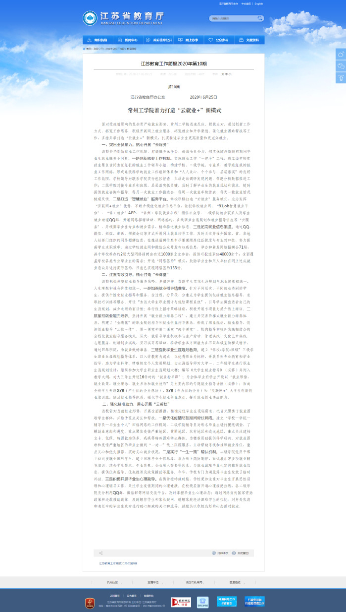 常州工学院着力打造“云就业+”新模式