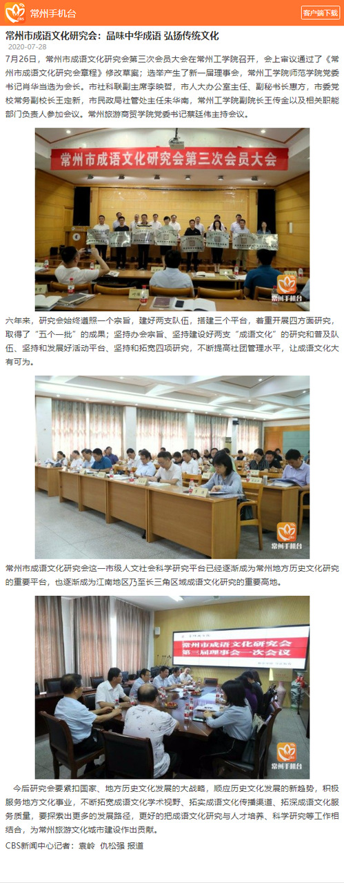 常州市成语文化研究会这一市级人文社会科学研究平台已经逐渐成为常州地方历史文化研究的重要平台,也逐渐成为江南地区乃至长三角区域成语文化研究的重要高地。