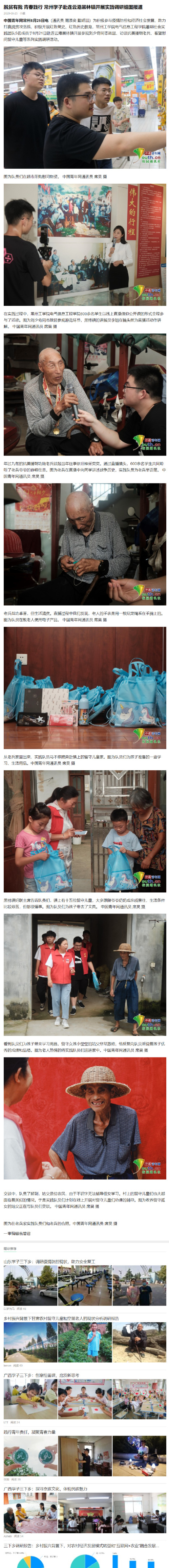 中国青年网常州8月25日电(通讯员 周添奕 戴峤喆)为积极参与疫情防控和经济社会发展、助力打赢脱贫攻坚战、积极开展红色党史、红色历史教育,常州工学院电气信息工程学院暑期社会实践团队5名成员于8月21日赴连云港黑林镇开展参观刘少奇同志故居、访谈抗美援朝老兵、看望慰问留守儿童等系列实践调研活动。