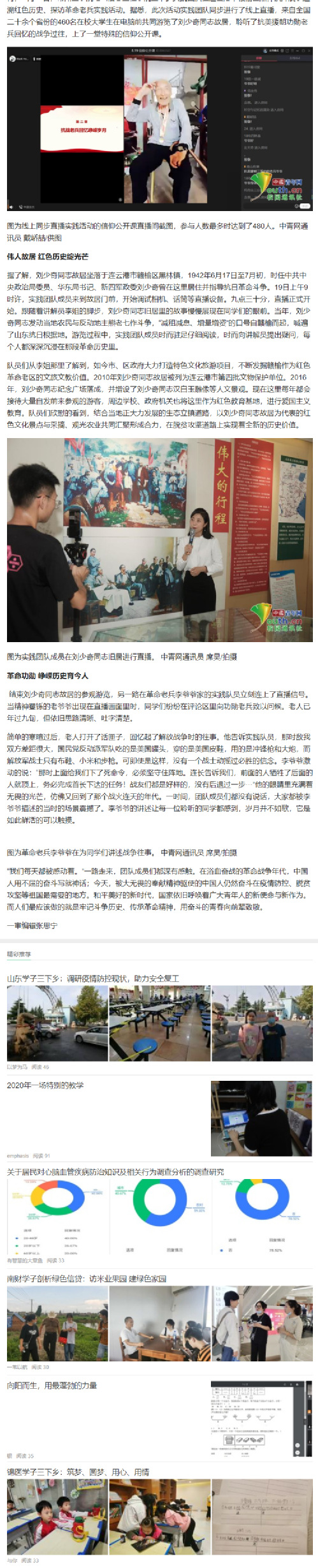 中国青年网常州8月25日电(通讯员 戴峤喆) 为学习红色历史、缅怀革命先烈、加强爱国主义教育, 8月19日,常州工学院电气信息工程学院三下乡实践团队在连云港市赣榆区黑林镇开展了追溯红色历史、探访革命老兵实践活动。据悉,此次活动实践团队同步进行了线上直播,来自全国二十余个省份的460名在校大学生在电脑前共同游览了刘少奇同志故居,聆听了抗美援朝功勋老兵回忆的战争过往,上了一堂特殊的信仰公开课。