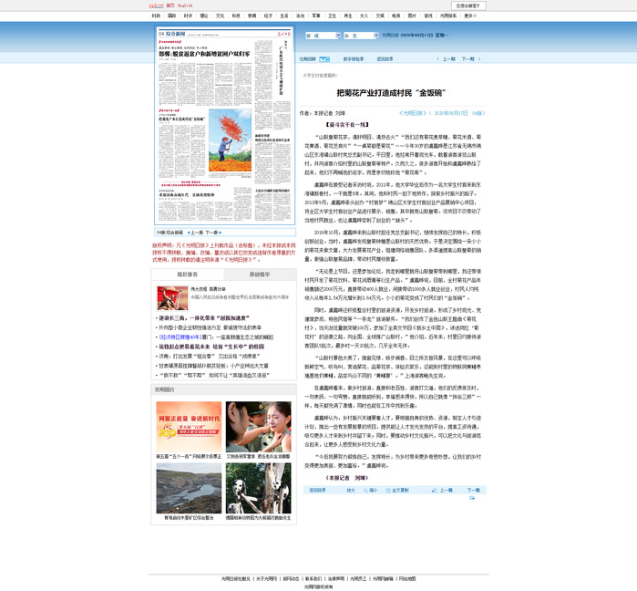 “山联皇菊花茶,清肝明目、清热去火”“我们还有菊花麦芽糖、菊花米酒、菊花黄酒、菊花芝麻片”“一桌菜都是菊花”……今年30岁的虞嘉晔是江苏省无锡市锡山区东港镇山联村党总支副书记。平日里,他经常开着观光车,载着游客游览山联村,并向游客介绍村里的山联皇菊等特产。久而久之,很多游客开始和虞嘉晔熟络了起来,他们不再喊他的名字,而是亲切地称他“菊花哥”。