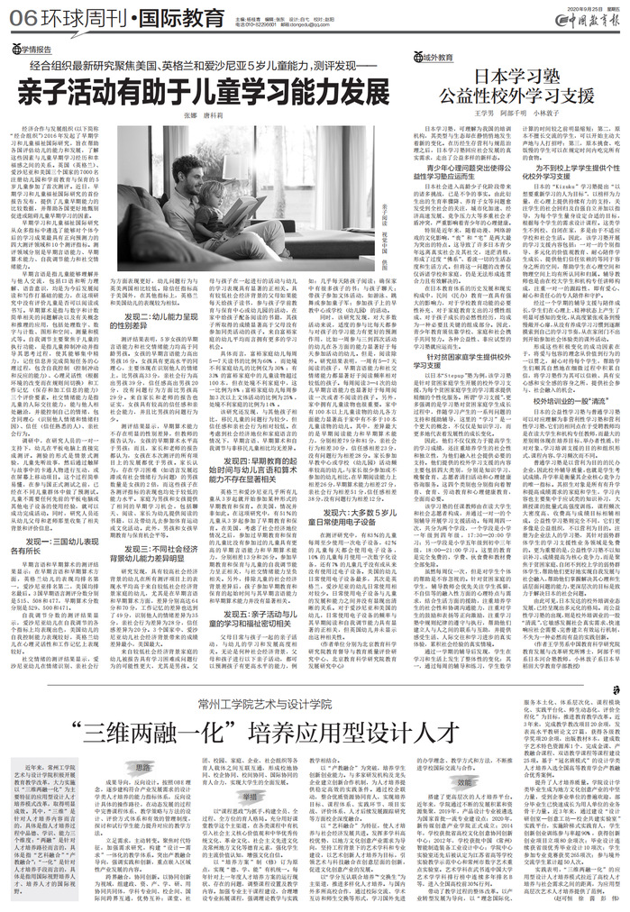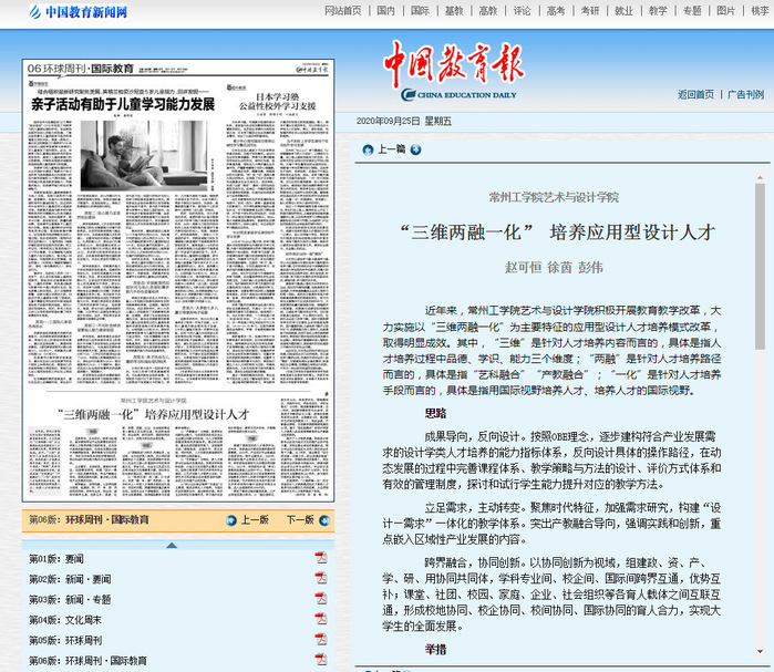 9月25日 中国教育报 | 常州工学院艺术与设计学院 “三维两融一化” 培养应用型设计人才