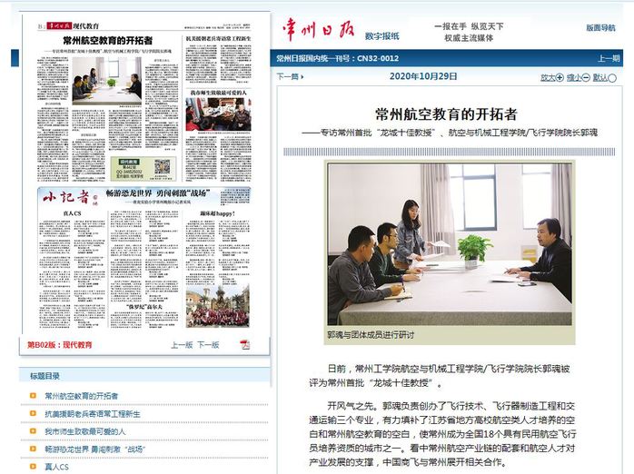 日前,常州工学院航空与机械工程学院/飞行学院院长郭魂被评为常州首批“龙城十佳教授”。