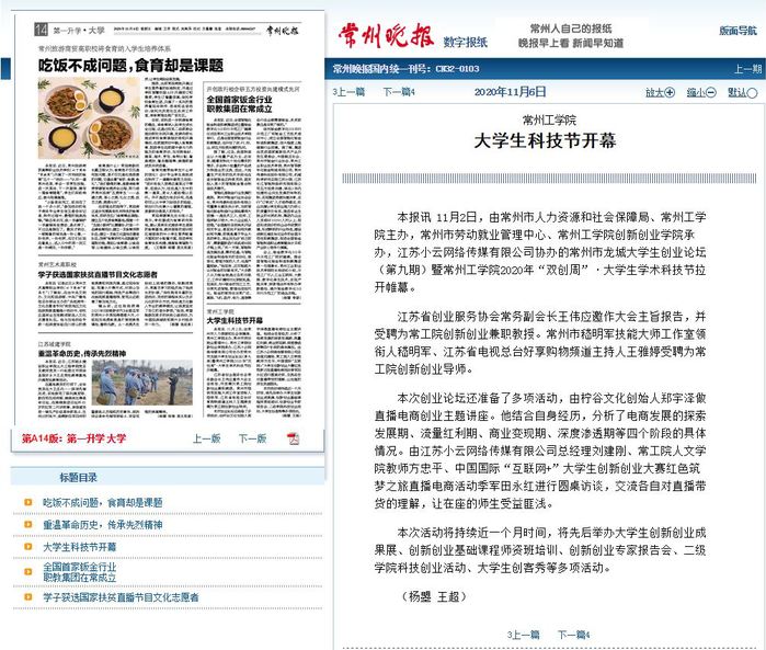 本报讯 11月2日,由常州市人力资源和社会保障局、常州工学院主办,常州市劳动就业管理中心、常州工学院创新创业学院承办,江苏小云网络传媒有限公司协办的常州市龙城大学生创业论坛(第九期)暨常州工学院2020年“双创周”·大学生学术科技节拉开帷幕。