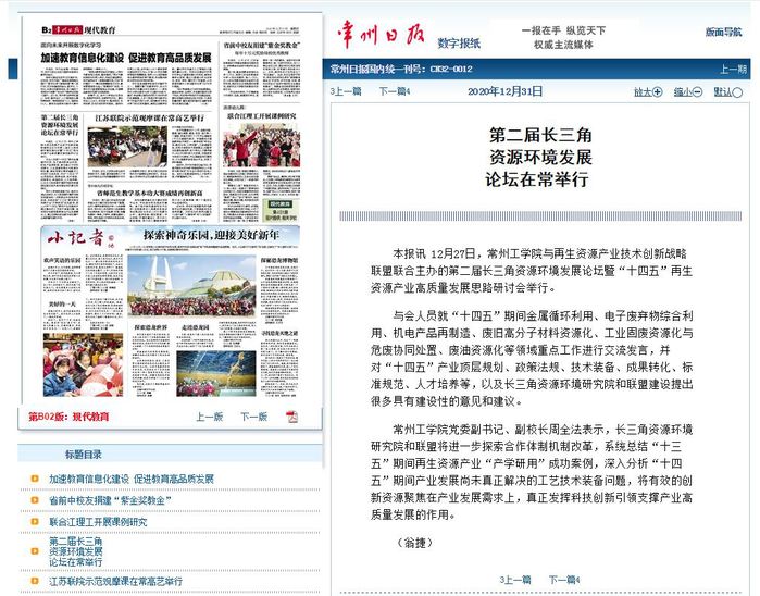 本报讯 12月27日,常州工学院与再生资源产业技术创新战略联盟联合主办的第二届长三角资源环境发展论坛暨“十四五”再生资源产业高质量发展思路研讨会举行。
