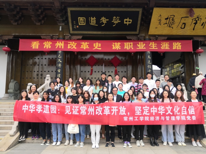 5月18日下午,由经济与管理学院书记张巧凤带队,党支部书记、生涯教育导师、创业联盟师生和党员积极分子师生一行50人赴常州中华孝道园,举行常州工学院大学生生涯教育导师聘任和生涯教育基地挂牌仪式。