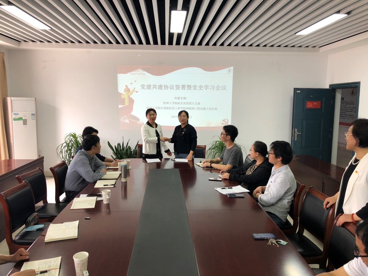为创新党建工作方式,提升支部党建工作水平,实现资源共享、优势互补,在党的百年华诞之际谱写新的党建成果。5月19日,机关党委第八支部与计算机信息工程学院物联网工程系教工党支部党建共建交流,常州工学院机关党委书记钱红萍、计算机信息工程学院党委书记李晓芳应邀出席会议,机关党委第八支部书记吕兰兰和计算机学院物联网教工支部书记王甜分别带领支部党员参加此次共建活动。
