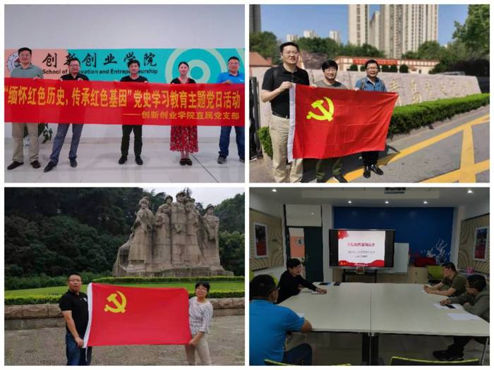 本次党日活动以“缅怀红色历史 传承红色基因”为主题,结合学校创新创业教育工作,以学党史、干实事、促双创为目标进行。5月21日-23日,全体党员分赴青岛、南京在参加2021新发展阶段创新创业教育改革工作会议所在地,参会党员须自觉去当地党史教育基地进行党史学习教育,全面了解党在各地的发展历史,坚定党的理想信念。参加“中共青岛党史纪念馆”的学习教育活动的党员,了解了青岛党组织的成立与发展过程,感受到青岛地下党领导青岛工人运动的大无畏革命精神;在“南京雨花台烈士纪念馆”,党员同志缅怀革命先烈,感悟初心使命,立志把雨花英烈精神发扬到现实工作中去。