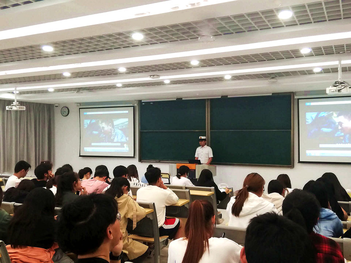 学院邀请了四位优秀退伍士兵。他们分享了各自在部队接受教育,磨练意志,成长成才的喜悦与收获,帮助同学们了解了真实的军人生活。他们鼓励在校的同学们携笔从戎,报效祖国。19商务张文星,曾服役于海军舰载航空兵三亚场站,通过在部队里的锻炼,他信心倍增,收获了朋友,增强了责任感和使命担当。19财二王小娇为我们展现了“大国利剑”的神秘部队——火箭军的傲然风采,“见红旗就扛,见第一就争”是她铭记于心的部队誓言,“有志者事竟成,百二秦观终属楚”是她在部队锻炼中坚定的信念。19财一雷雨昕让我们看到了军营里丰富多彩的生活,让我们感受到军营是一个令人成长的地方,更是一个在有苦有乐的岁月里升华人生的地方。20财一肖国梁,曾服役于中国人民解放军海军航母编队呼伦湖舰,他以两段视频开场,将他眼中的海军展现给同学们,在激昂的音乐声中海军的磅礴气势吸引着每一个人,令同学们无不向往。