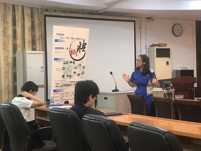 5月25日下午,外国语学院召开日语专业校企座谈会及毕业生校园招聘会。外国语学院特邀令和国际教育门丽利校长、安川(中国)机器人有限公司人事部部长杨倩倩、江苏滨名机械有限公司人事部部长徐亚芳、常州田上机械有限公司人事部部长钱娟4家优质企业及各企业人事专员,参与校企座谈并针对外国语学院日语专业学生召开一场点对点校园招聘会。党委书记刘一鸣、日语专业系主任于乐育、日语骨干教师薛静博士参与座谈,日语专业2017级、2018级学生参加招聘会。