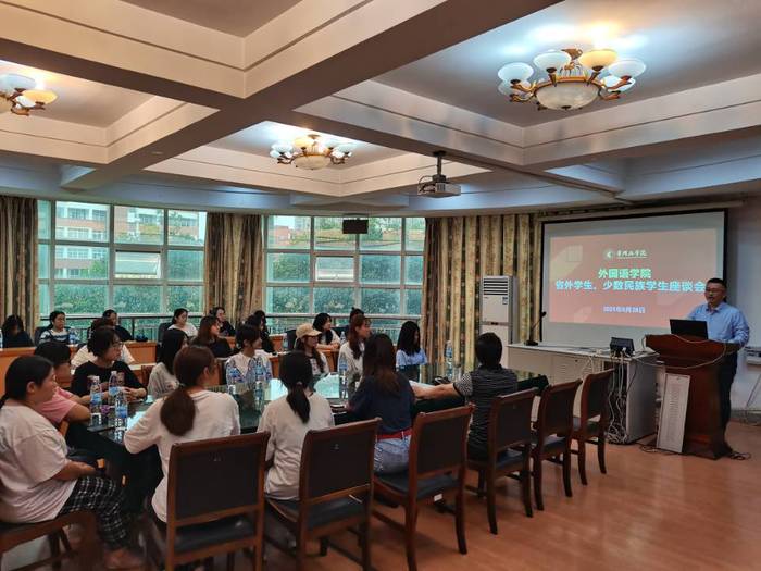 5月28日下午,外国语学院举办了少数民族和省外学生座谈会。院党委副书记俞贤辉主持,2020级全体少数民族和省外学生参加。