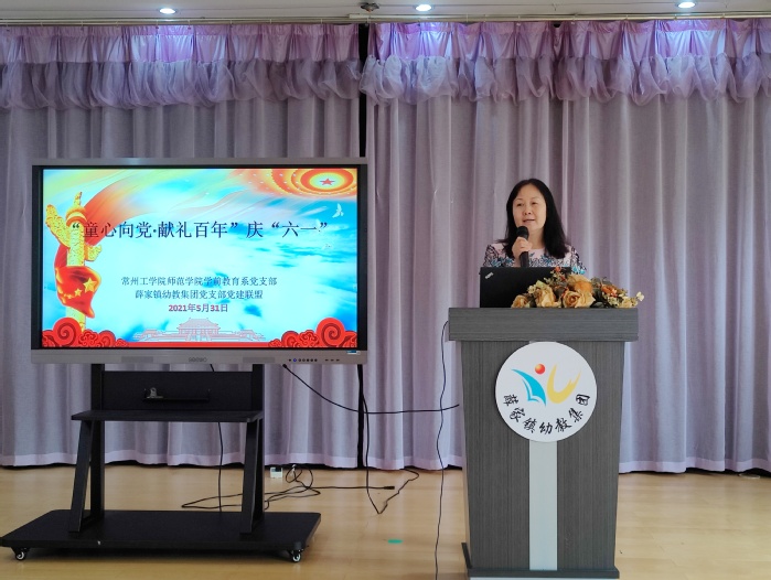 5月31日,常州工学院师范学院学前教育系教师党员和学生党员前往薛家幼教集团聚怡园区,与薛家镇幼教集团党支部的党员老师们共同开展了“童心向党·献礼百年”庆“六一”主题活动党日活动。
