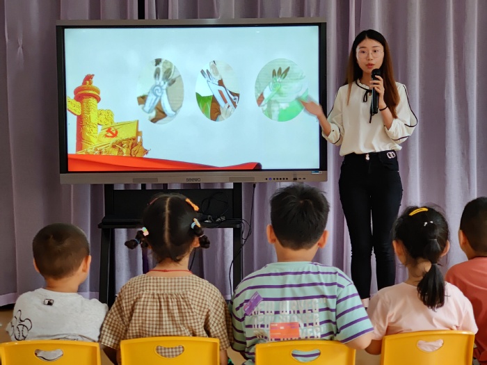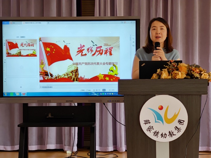 师范学院副院长张建波致辞。师范学院学前教育系三名学生党员代表王美兰、刘津、周雯慧,分别给薛家镇聚怡园区大班的幼儿讲述了《雷锋的故事》、《鸡毛信》、《王二小》的故事。一个个生动形象的革命英雄故事让幼儿们感悟党的初心和使命,为他们的心灵播种下爱党、爱祖国、爱家乡的美好情感。随后,师范学院学前教育系教工党支部书记杨晓岚以党的历届代表大会发展历程为主题,给全体党员讲述了中国共产党成立100周年以来历届党的代表大会开展的历史背景与意义,重温了我党从诞生到如今新时代中国特色社会主义建设时期的光辉历程,激励全体党员不忘初心、牢记使命,为实现中华民族伟大复兴的中国梦不懈奋斗。