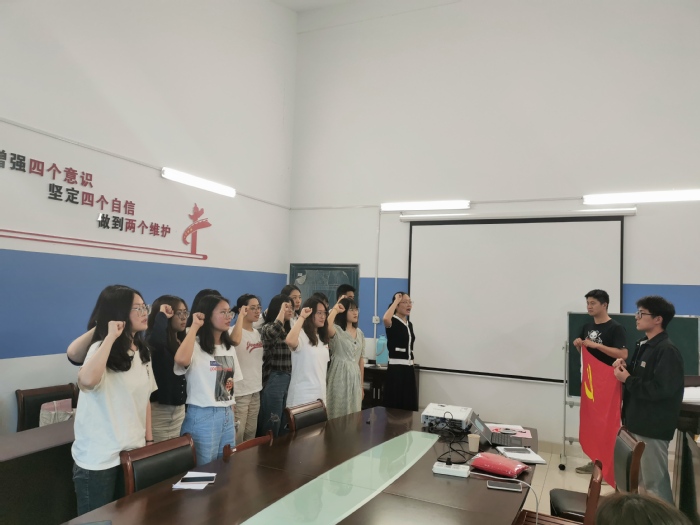 两节专题党课后,全体毕业生党员在支部书记任雪静的带领下,重温入党誓词。一起面对鲜红的党旗,再次庄严宣誓:“我志愿加入中国共产党……随时准备为党和人民牺牲一切,永不叛党。”铿锵恢宏的誓词,强烈震撼着在场的每一位党员,一字一句,神圣而豪迈,铮铮誓言,体现了毕业生党员对中国共产党的无限忠诚,坚定了入党使命和奋斗初心。