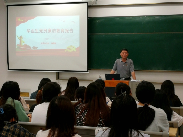 6月23号下午,校纪委副书记,纪委办公室主任姚国胜应邀赴经济与管理学院,开展“送廉政党课进支部”活动,为学院全体学生党员讲授“严守党纪国法、坚持廉洁从业”的廉政专题党课。