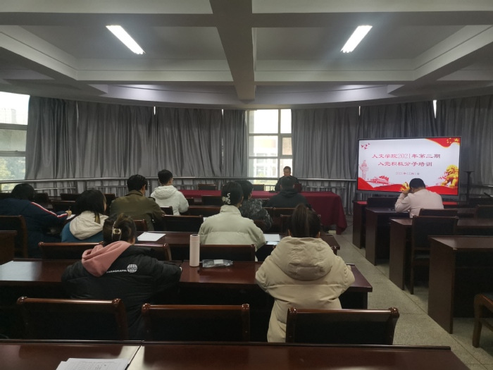 12月1日,人文学院分党校2021年第二期入党积极分子培训班顺利开班。院党委书记吴健、院长谢燕红、党委副书记曹鸣谦、党委委员王艳对20余名入党积极分子进行专题培训。