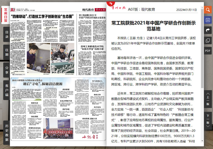 本报讯(王超 尤佳) 记者1月4日从常州工学院获悉,该校被认定为2021年中国产学研合作创新示范基地,全国共19家单位在列。