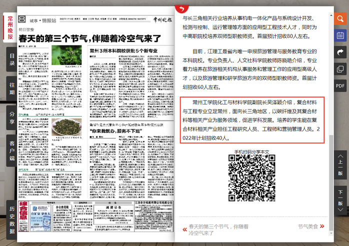 常州工学院化工与材料学院副院长吴泽颖介绍,复合材料与工程专业立足常州,面向长三角地区,以碳纤维及其复合材料等相关产业为服务领域,促进学科发展。培养的学生能在复合材料相关产业担任工程研究人员、工程师和营销管理人员。2022年计划招收40人。