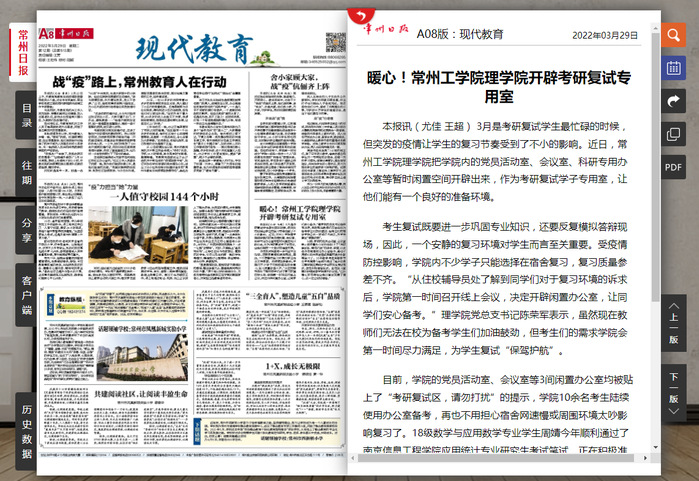 本报讯 3月是考研复试学生最忙碌的时候,但突发的疫情让学生的复习节奏受到了不小的影响。近日,常州工学院理学院把学院内的党员活动室、会议室、科研专用办公室等暂时闲置空间开辟出来,作为考研复试学子专用室,让他们能有一个良好的准备环境。