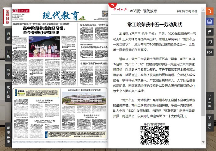 “常州市五一劳动奖状”是常州市总工会授予企事业单位的最高荣誉。常州工学院将发扬顽强拼搏、争创一流的精神,助力全市“532”发展战略,与建设“强富美高”新常州同频共振、同进共上,以实际行动迎接党的二十大胜利召开。