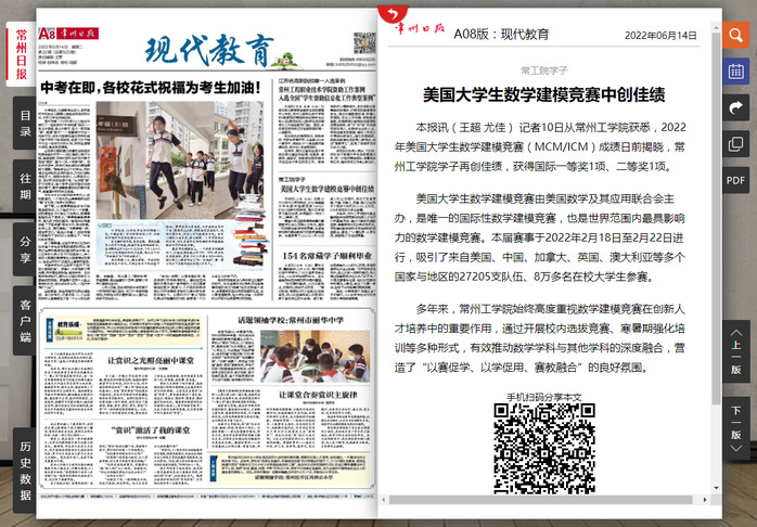 记者10日从常州工学院获悉,2022年美国大学生数学建模竞赛(MCM/ICM)成绩日前揭晓,常州工学院学子再创佳绩,获得国际一等奖1项、二等奖1项。
