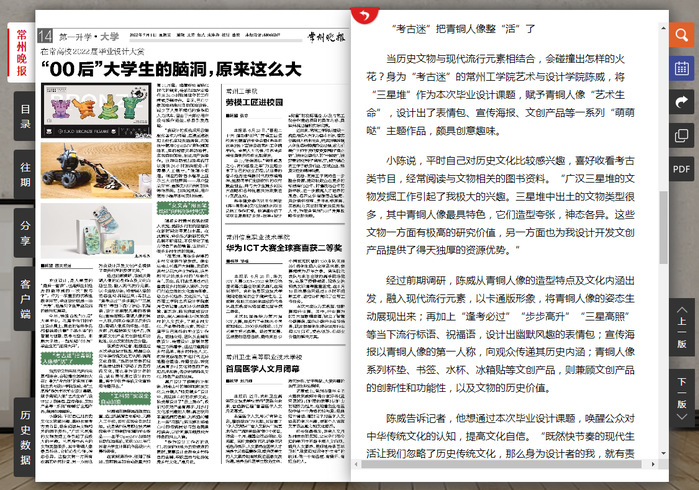 当历史文物与现代流行元素相结合,会碰撞出怎样的火花?身为“考古迷”的常州工学院艺术与设计学院陈威,将“三星堆”作为本次毕业设计课题,赋予青铜人像“艺术生命”,设计出了表情包、宣传海报、文创产品等一系列“萌萌哒”主题作品,颇具创意趣味。