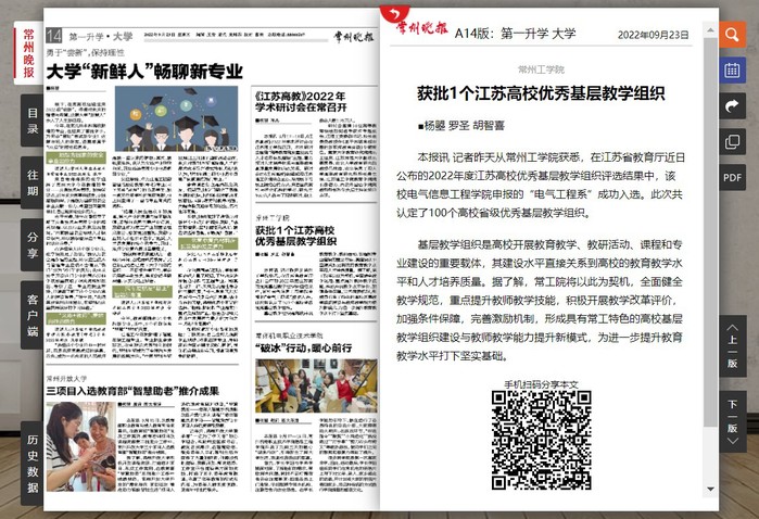 本报讯 记者昨天从常州工学院获悉,在江苏省教育厅近日公布的2022年度江苏高校优秀基层教学组织评选结果中,该校电气信息工程学院申报的“电气工程系”成功入选。此次共认定了100个高校省级优秀基层教学组织。