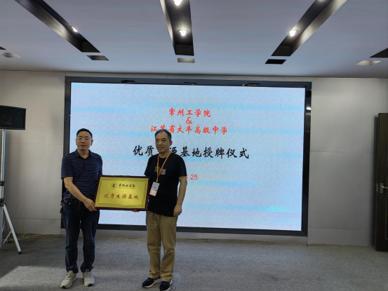 院长陈荣军就学校发展历史、办学实力、专业特色和培养质量等方面为各中学领导、教师进行了详细介绍,并与江苏省大丰高级中学、东台市安丰中学和射阳县第二中学签订了共建优质生源基地协议,举行了优质生源基地授牌仪式。