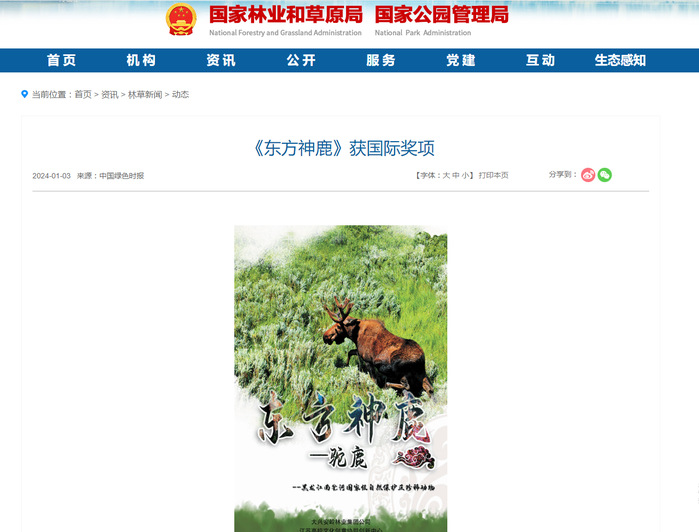 2023年12月28日,第15届澳门国际电影节“金莲花奖”各大奖项揭晓。国家林草局大兴安岭林业集团公司选送的生态纪录片《东方神鹿》,从7000余部作品中脱颖而出,荣获纪录片类最高奖项——“金莲花”最佳纪录片奖。