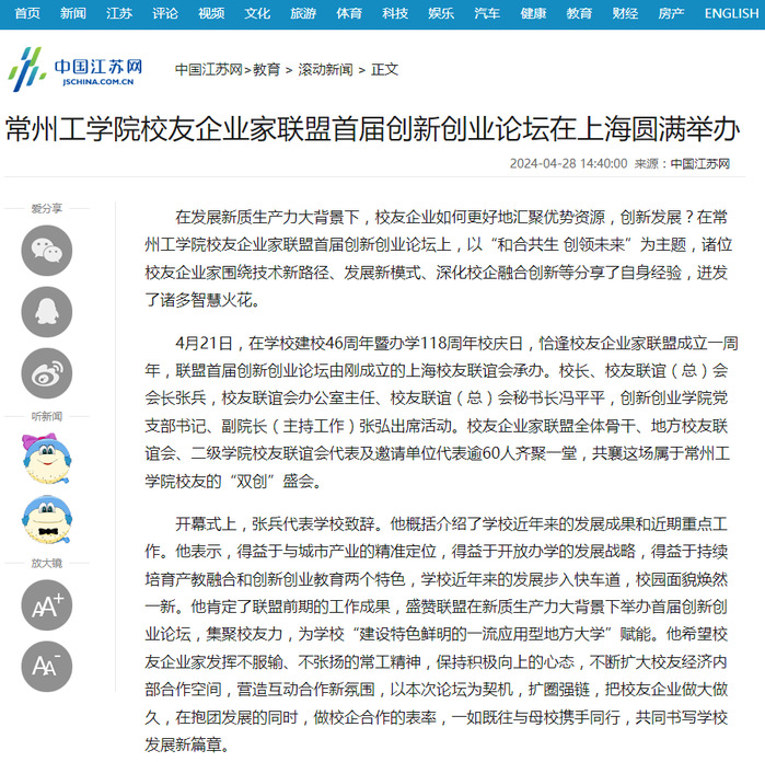 在发展新质生产力大背景下,校友企业如何更好地汇聚优势资源,创新发展?在常州工学院校友企业家联盟首届创新创业论坛上,以“和合共生 创领未来”为主题,诸位校友企业家围绕技术新路径、发展新模式、深化校企融合创新等分享了自身经验,迸发了诸多智慧火花。