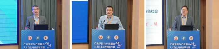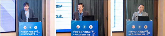 其他4场专家报告是:湖北汽车工业学院副校长张友兵所作的《深化产教融合,培养卓越汽车工程师的探索与实践——以东风HUAT智能汽车产业学院为例》,山东省职业教育和产业人才研究院院长刘昕所作的《产教融合的新思考及山东实践》,东南大学集成电路学院院长孙伟锋所作的《我国集成电路人才高质量自主培养的思考与探索》,常州大学党委常委、宣传部部长薛冰所作的《以组织结构模式变革激发办学活力——常州大学现代产业学院办学实践》。