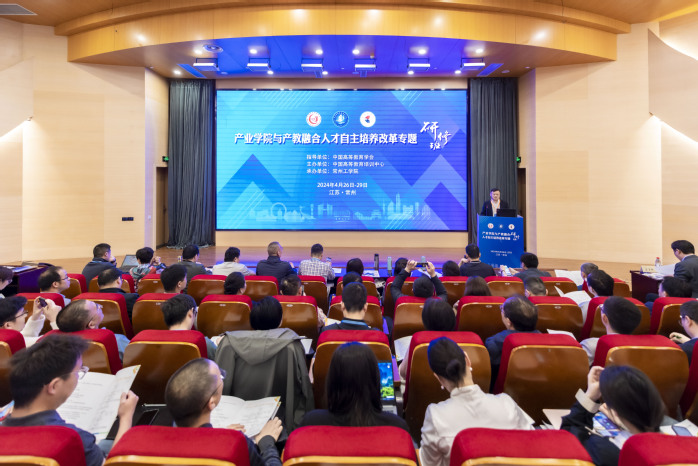 交汇点讯 4月26日至28日,由中国高等教育学会指导、中国高等教育培训中心主办、常州工学院承办的产业学院与产教融合人才自主培养改革专题研修班顺利举办。包括常州工学院校长张兵在内的8位专家“华山论剑”,分享基于产业学院与产教融合的人才自主培养模式,探讨发展新质生产力的理论逻辑和实践路径。来自全国多所高校的校领导、教学条线领导、专业带头人、教学科研团队负责人、骨干教师,有关科研院所、企业人员,以及常州工学院教师代表近200人参加培训。