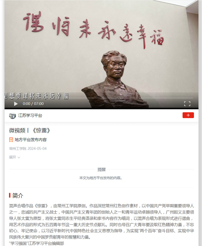 微视频丨《惊雷》(混声合唱作品《惊雷》,由常州工学院原创)