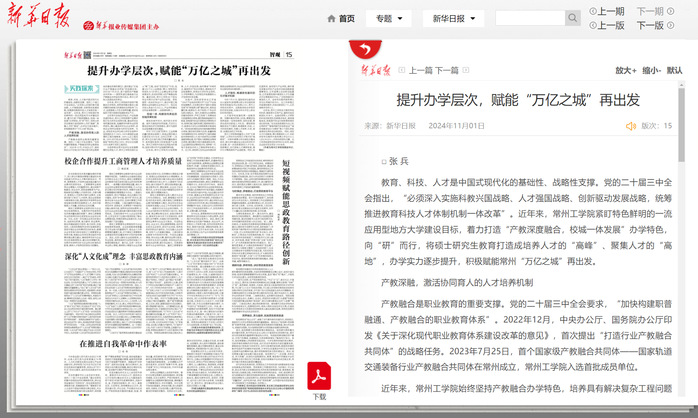 近年来,常州工学院始终坚持产教融合办学特色,培养具有解决复杂工程问题和创新能力的高层次应用型专门人才,全面提高人才自主培养质量,更好地服务于常州培育和发展新质生产力。