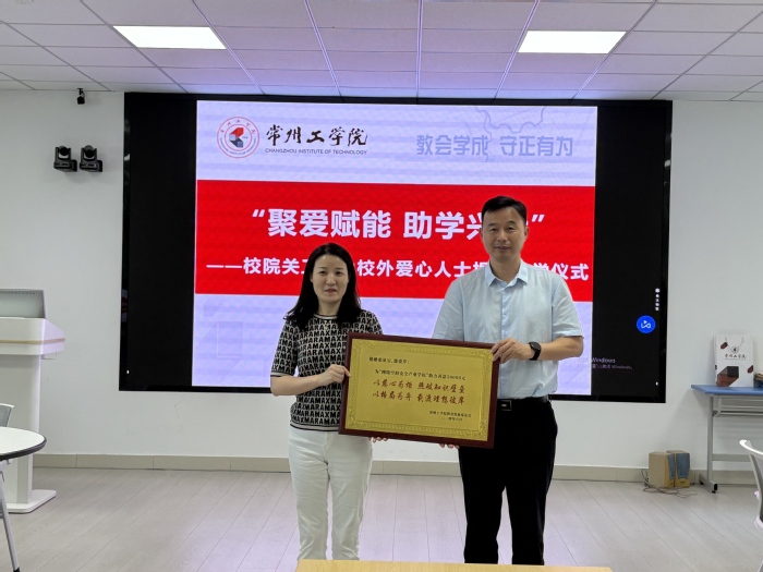 最后,校党委常委、副校长刘春节为邵女士颁发捐赠证书及“爱心助学使者”铜牌,铜牌上刻有“扶智扶志 泽被学子 善行流芳 厚德载物”字样,是对邵女士七年默默善举的高度认可。刘春节强调,本次仪式不仅为学生提供实际帮助,更彰显“学校主导、学院联动、社会参与”的协同育人新模式,为教育事业注入暖流。