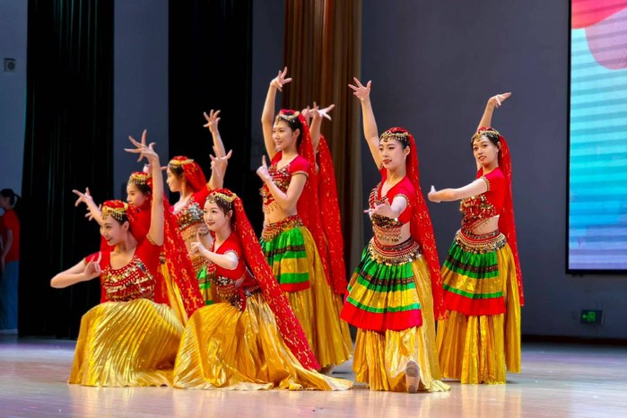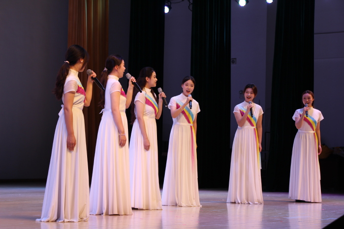 进入《青春飞扬》篇章,精彩继续升级。曾亮相广州亚运会的印度舞蹈《蒙格尼》,以灵动手势与曼妙步伐展现异域风情。组歌《青春飞扬》通过“星辰”“选择”“未来”三个段落,以激昂歌声唱出当代青年的理想抱负与时代担当。竹笛独奏曲《大青山下》融合北派竹笛技巧,尽显民族风格与时代气息。女声小合唱《绒花》以温暖的演绎赞颂青春的坚韧。唢呐二重奏《吉庆锣鼓》则以高亢音色将现场氛围推向高潮,让观众感受民乐的奔放活力。演出最终在歌舞《筑梦》的优美旋律中圆满收官。
