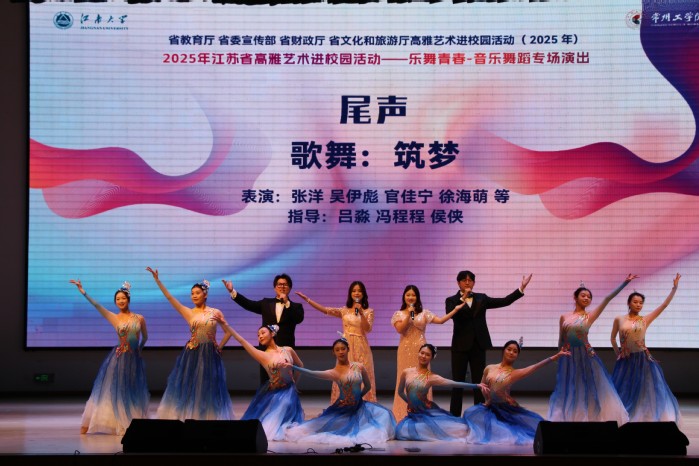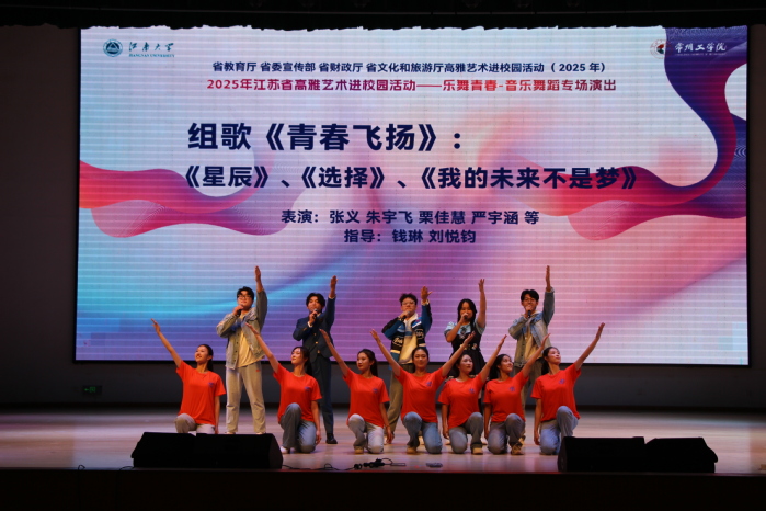 本次演出由江南大学人文学院音乐系精心策划,以“乐舞青春”为主题,巧妙划分《文化寻根》《青春飞扬》两大篇章,涵盖舞蹈、阿卡贝拉、室内乐、朗诵、器乐协奏等10余种艺术形式,11个节目串联起传统与现代、民族与异域的多元艺术表达,尽显青春活力与艺术魅力的碰撞之美。
