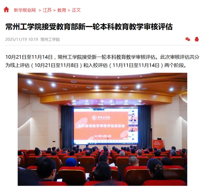 10月21日至11月14日,常州工学院接受新一轮本科教育教学审核评估。此次审核评估共分为线上评估(10月21日至11月8日)和入校评估(11月11日至11月14日)两个阶段。