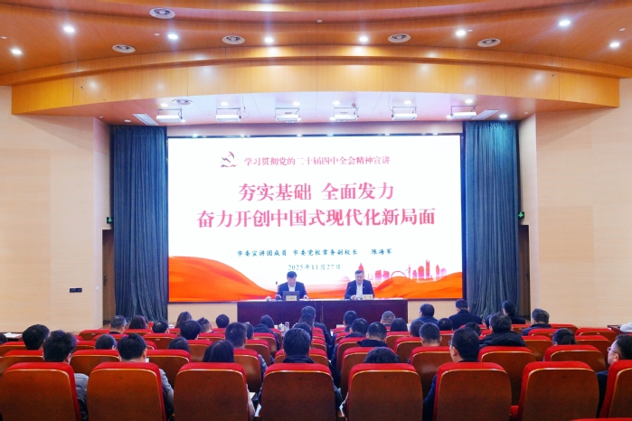 11月27日,学习贯彻党的二十届四中全会精神市委宣讲团报告会在常州工学院举行。市委宣讲团成员、市委党校常务副校长陈海军作宣讲报告。校党委副书记、校长张兵主持。