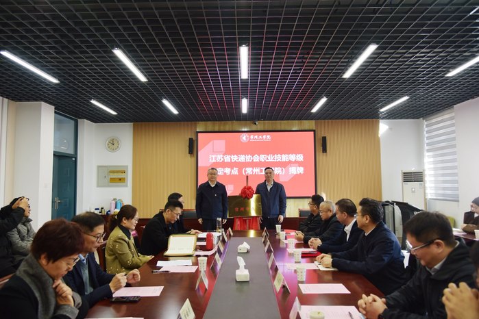 随后,仪式依次进行了常州市数智供应链党组织、共建数智供应链产业学院、校企联合攻关项目签约。经济与管理学院党委副书记、副院长李芸达宣读产业教授聘任文件,并为两位产业教授颁发聘书。李雄威与常州市快递协会常务副会长、顺丰运输(常州)有限公司副总经理王胜勇共同为“江苏省快递协会职业技能等级认定考核点(常州工学院)”揭牌。