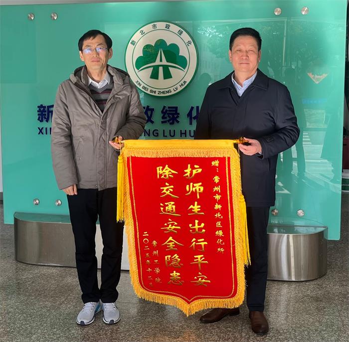 12月3日下午,校工会主席章志荣一行专程前往新北区市政绿化管理所,送上写有“护师生出行平安 除交通安全隐患”的锦旗,对该所快速响应诉求、优化校园周边路段绿化、消除交通安全隐患的举措表示诚挚感谢,并与该所就后续校园周边环境提升与合作拓展达成初步共识。
