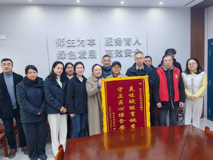 1月4日,常州市食品协会向常州工学院后勤服务中心赠送“美味赋能育桃李,守正匠心保食安”锦旗,表彰我校食品安全监管团队在校园食品安全管理、膳食服务保障及食育文化建设中的突出贡献。