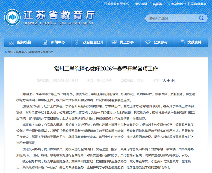 (文章来源:江苏省教育厅高校动态2026年3月3日)